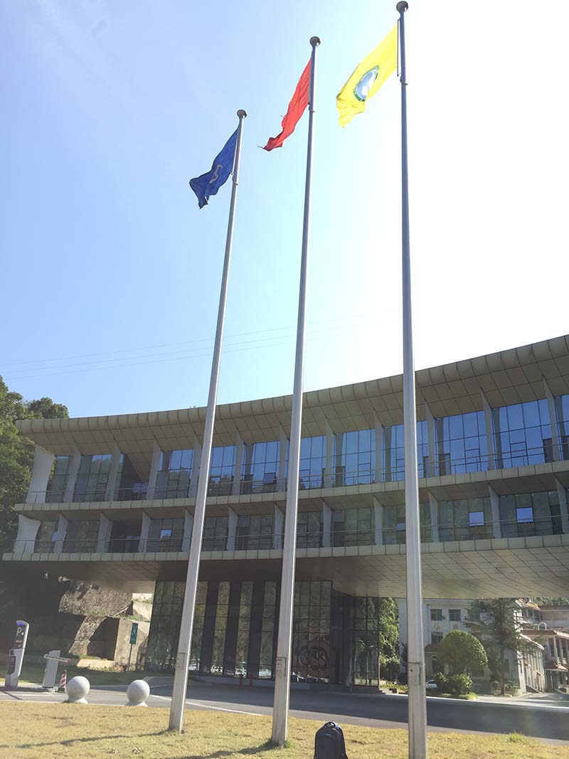 目前安装三根旗杆是公司,酒店,工厂,学校的主流选择,一般中间悬挂国旗并高出左右两边的旗帜0.5-1.2米,左右两边一般悬挂集团旗帜,校旗或班旗等,我司的三根电动升旗可以同升同降或分开升降并同步不同的音乐。