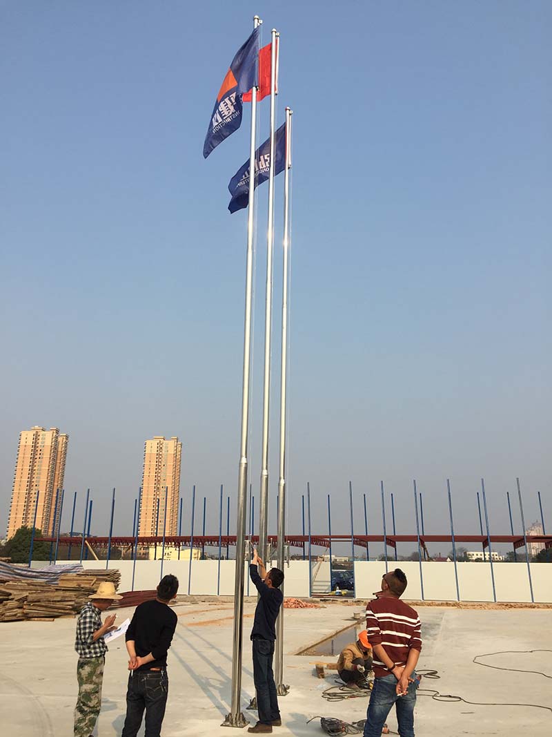分节式旗杆又称变径旗杆,套接式旗杆,因其造价低廉,一般应用于工程项目部门口,不便运输到达的场所及其他要求有形象展示但经费不大充足的场所。我司制作此类旗杆,均在对接口焊接套筒,安全牢固,不因造价低廉而降低制作标准,确保优质。