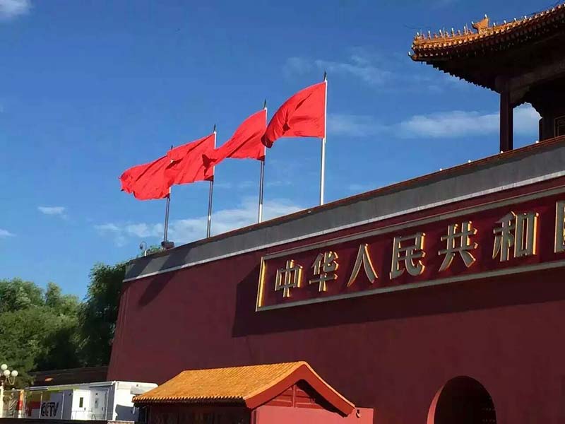 2015年,正值抗战胜利70周年大庆,7月份,我司担负起为天安门城楼左右两侧各4根共8根旗杆的更换任务,仅用时1个月,我司顺利高效完成任务。此8根旗杆为整体旋转式。